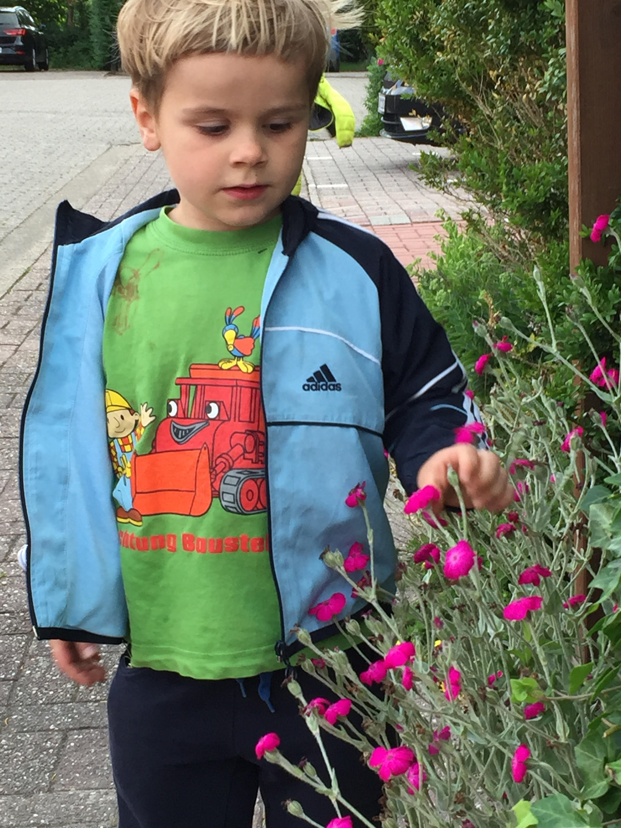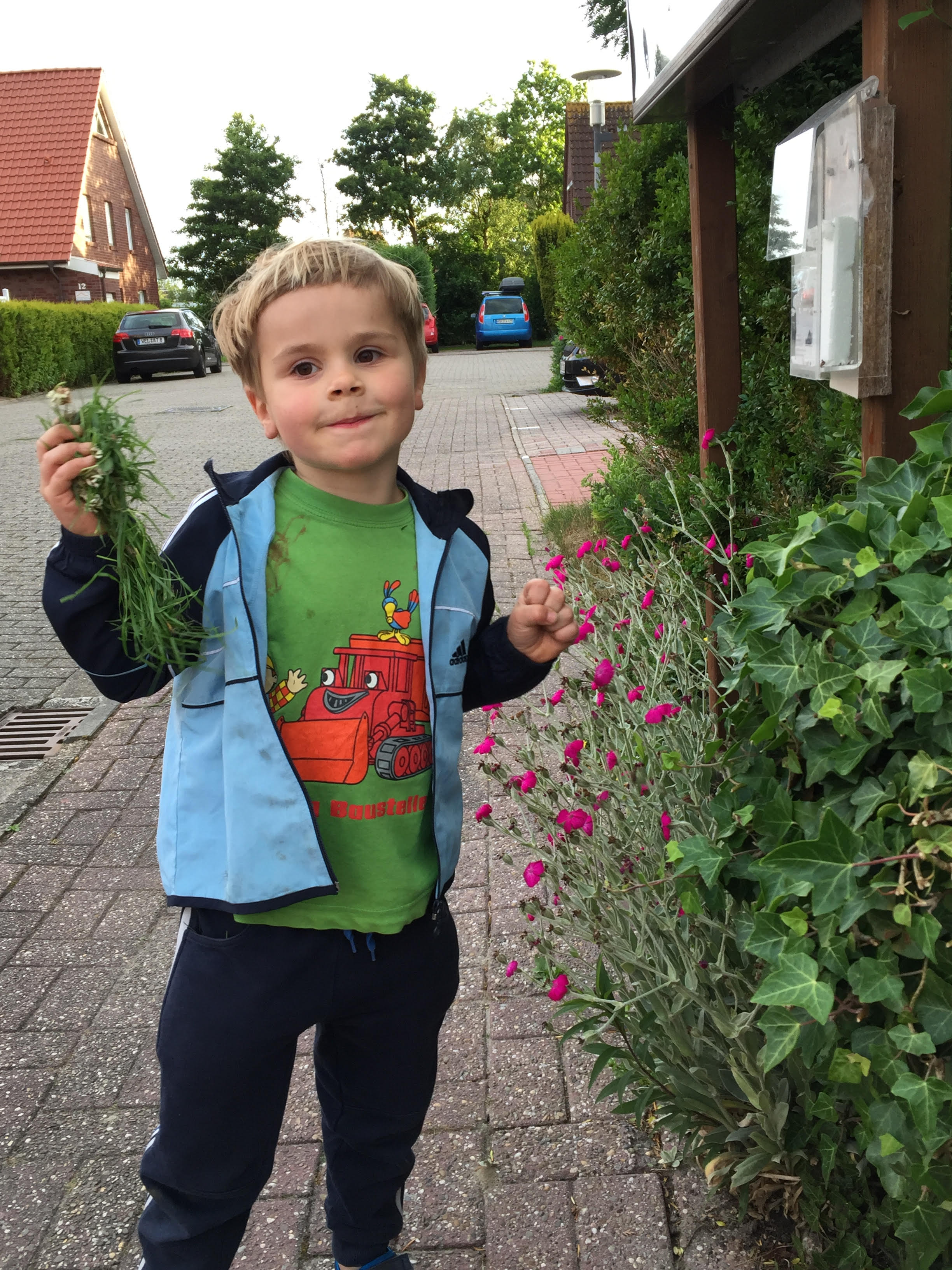 Johann hat in Norddeich offenbar seine Liebe zu Pflanzen entdeckt. An bestimmten Stellen unserer Wege hier wachsen seine Lieblingsblumen, welche bei jedem Passieren